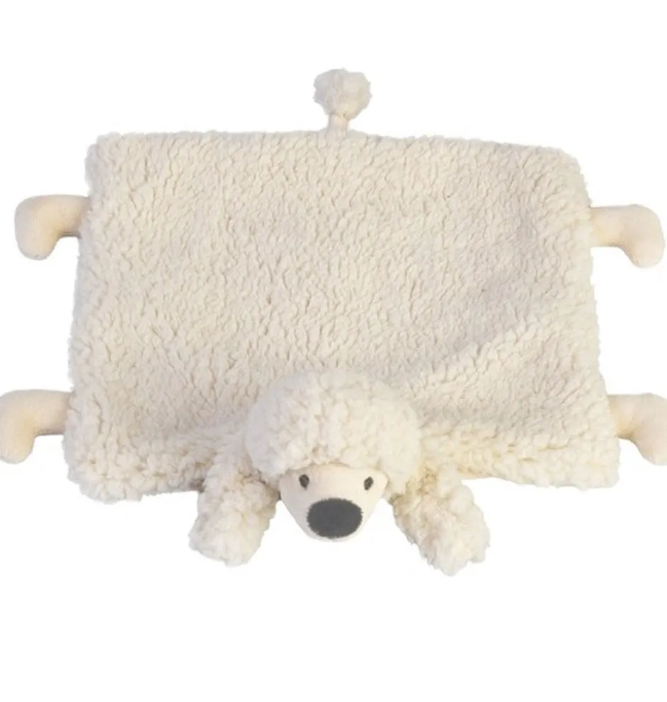 Het knuffeldoekje heeft een zachte, licht ecru vacht met een charmante textuur.