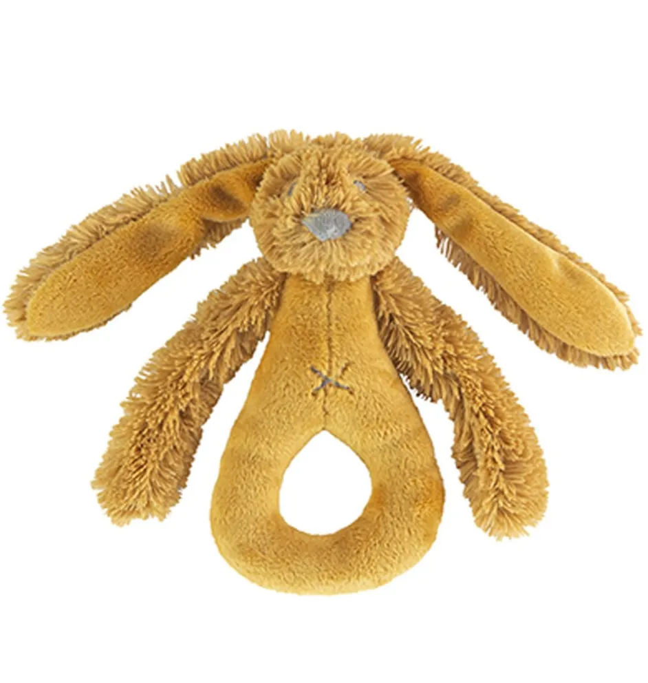 Nieuwe rammelaar van Happy Horse in een prachtige tint. Dit is konijntje Richie in een prachtige okergele kleur.