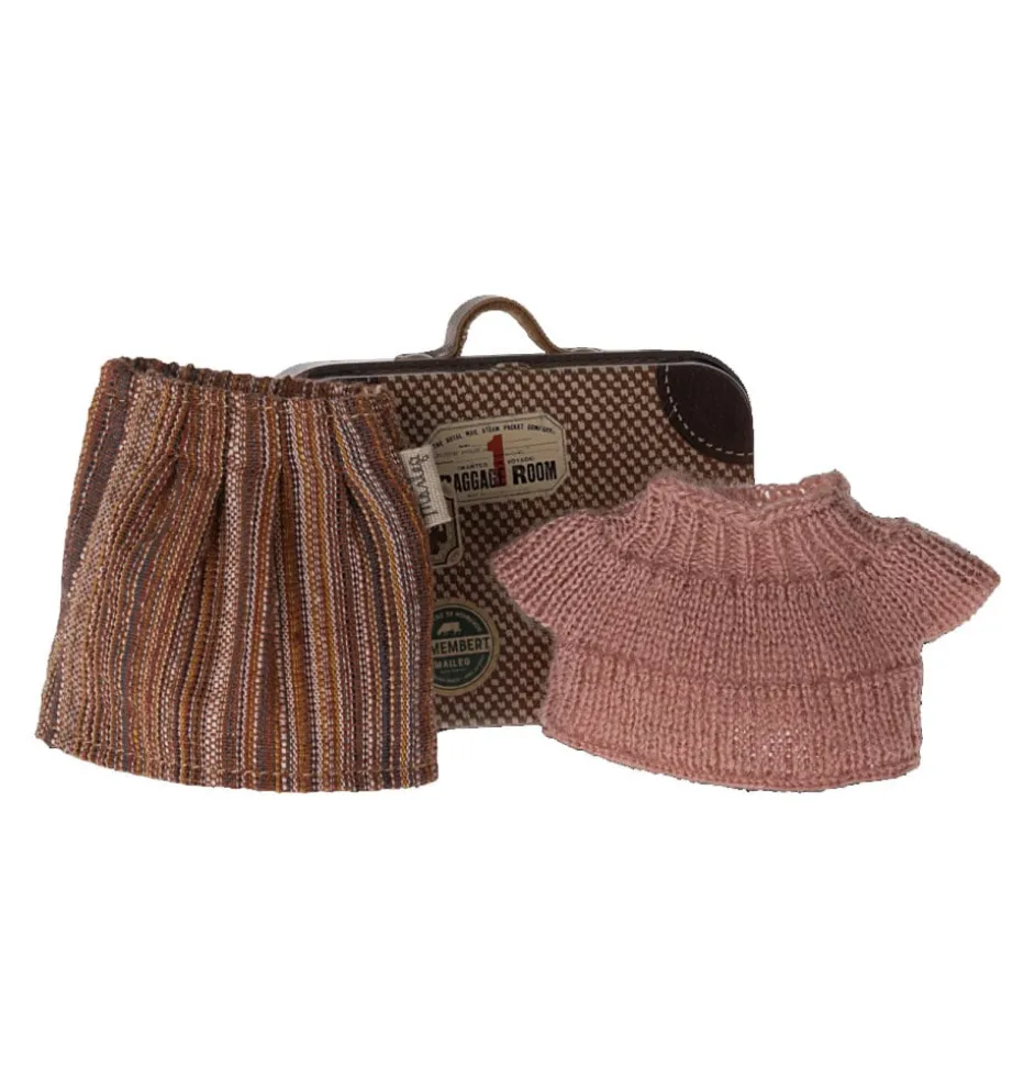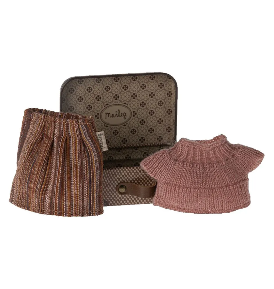 Maileg kledingset grootmoeder muis met bijpassend koffertje.