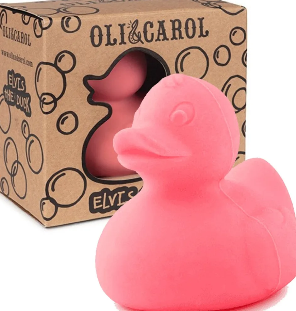 Badeendje Elvis is ontworpen door het Spaanse merk Oli & Carol. Het speeltje is gemaakt van natuurlijk rubber.