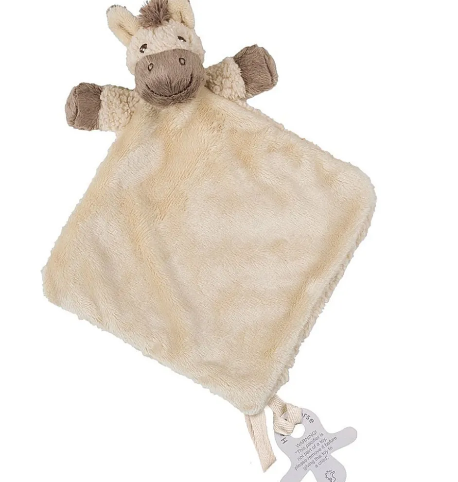 Dit is knuffelpaard Helma, een heerlijk zacht knuffeldoekje voor de allerkleinsten. Ontworpen door het Nederlandse merk Happy Horse. Leuk is dat er een speentje aan bevestigd kan worden.