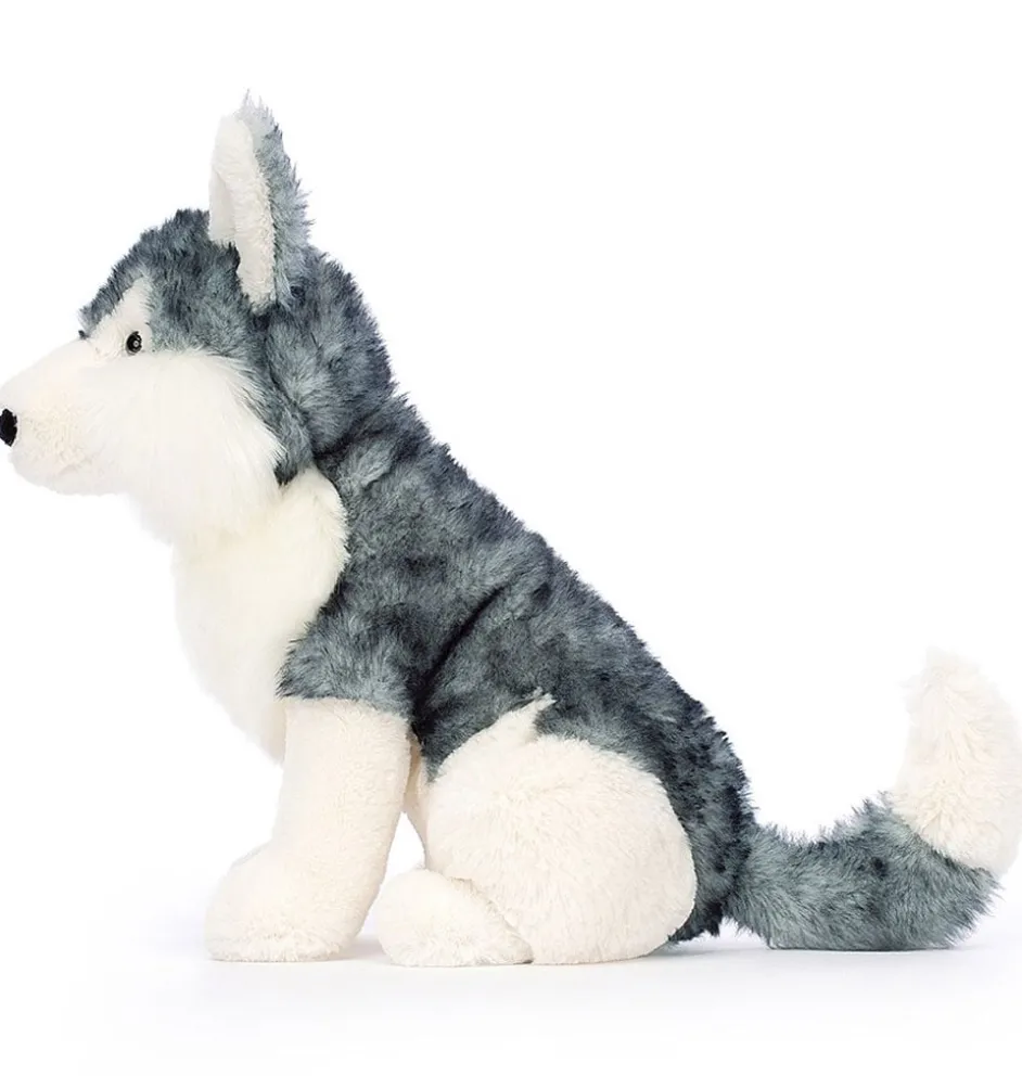 Jackson husky is 25 cm groot en is ontworpen door het merk Jellycat.