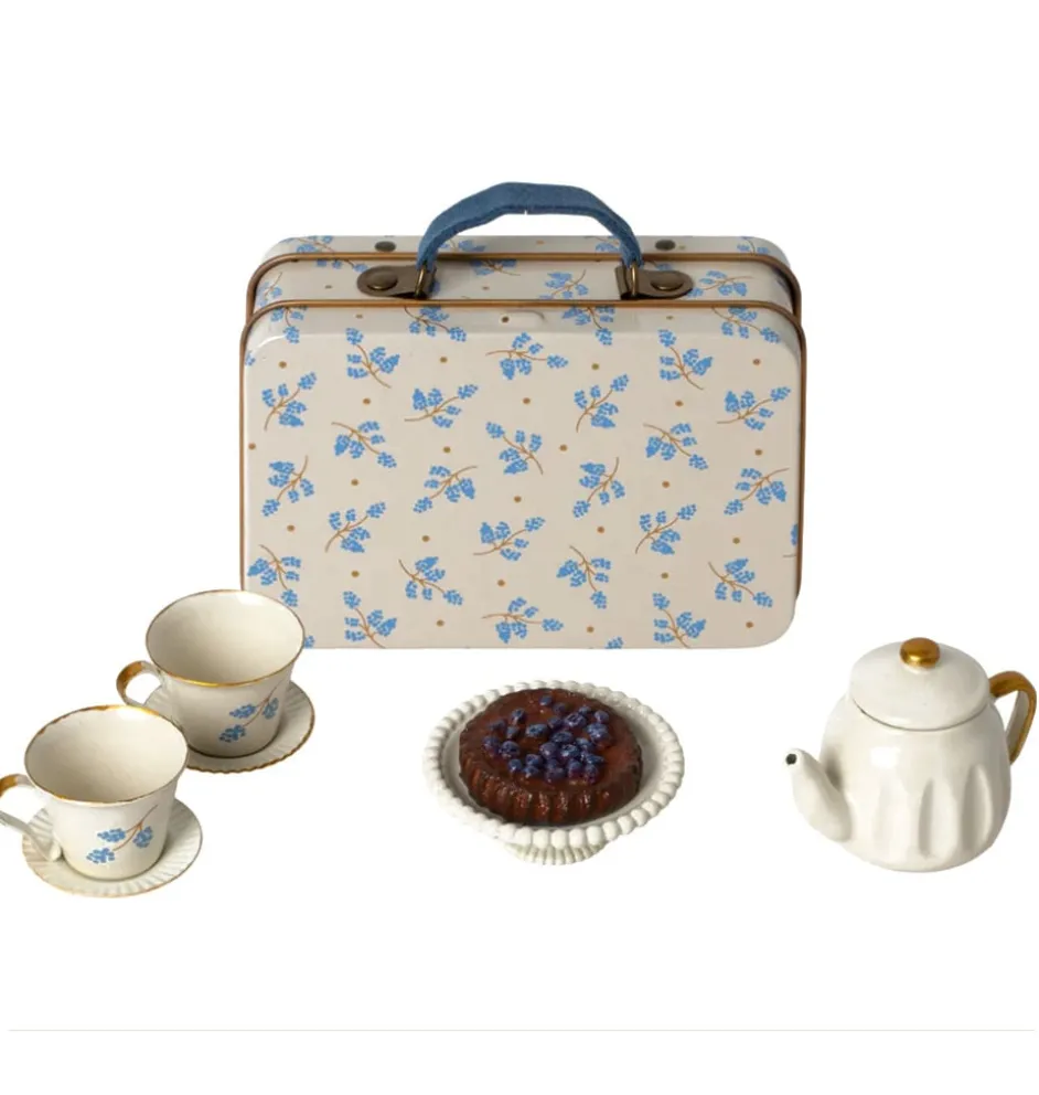 Superleuk van Maileg is dit metalen koffertje, met theekopjes, een theepot en een heerlijke bosbessentaart.