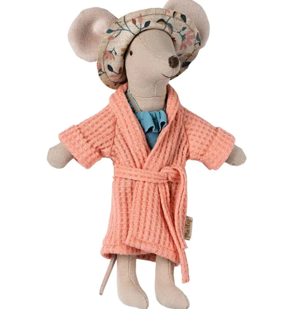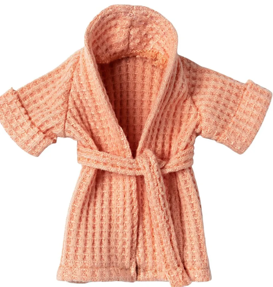 Deze badjas van Maileg is op maat gemaakt voor moeder muis van Maileg (maar vader muis past de jas ook… )