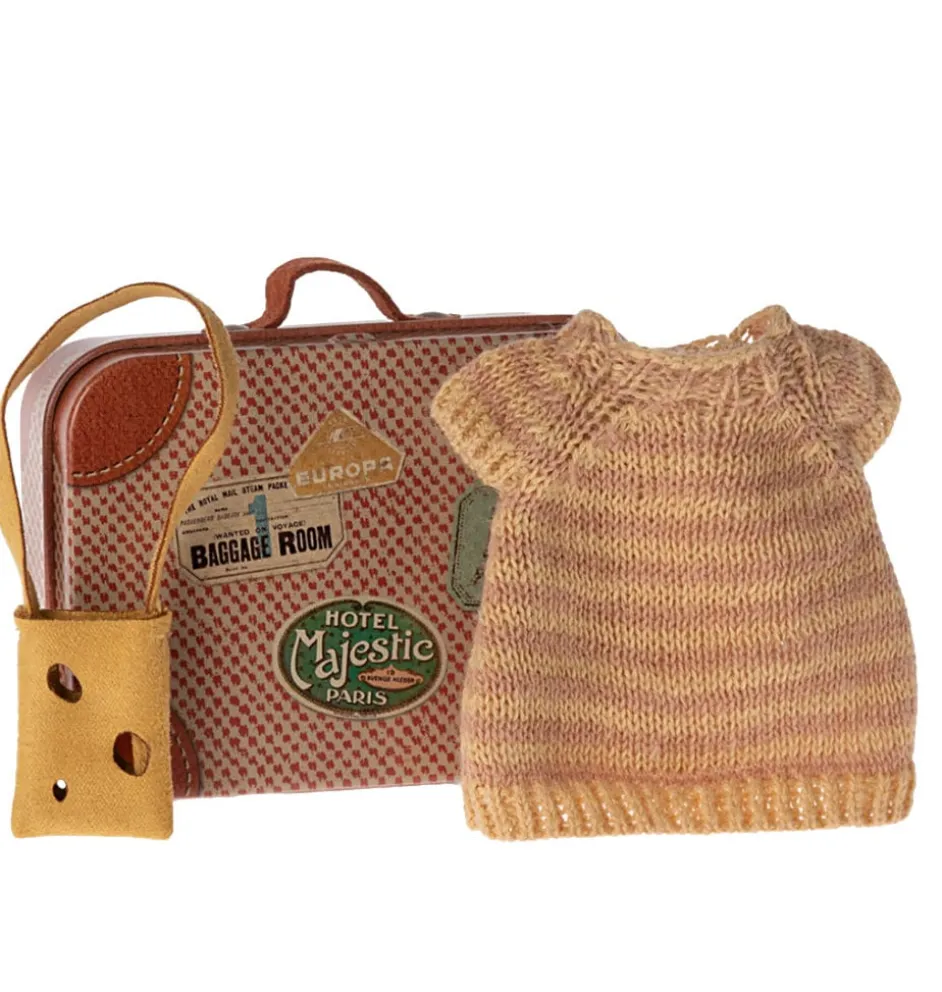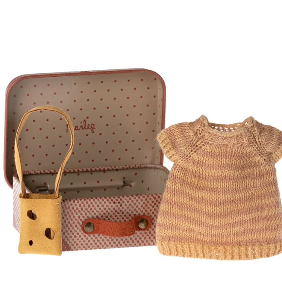 Maileg gebreide jurk met kaastas big sister muis + een metalen koffertje