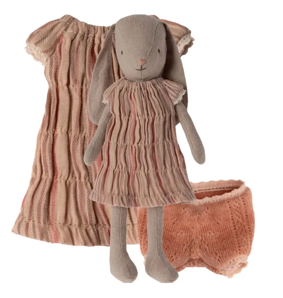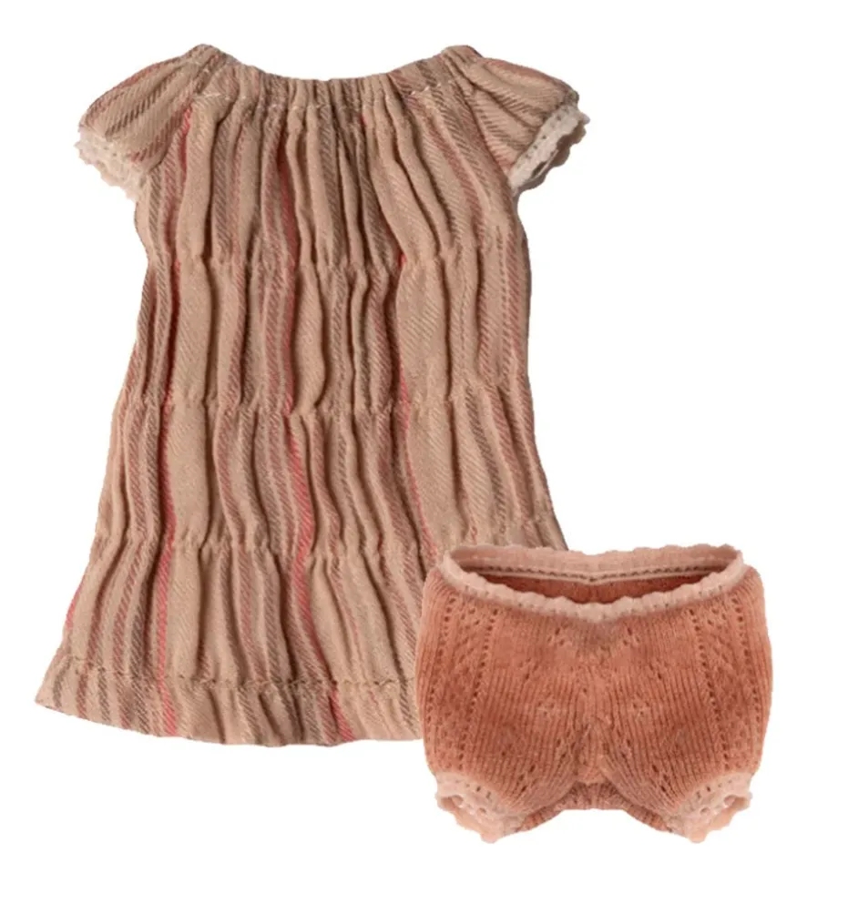 Kledingsetje voor de Maileg konijntjes bestaande uit een jurk en een onderbroekje.
