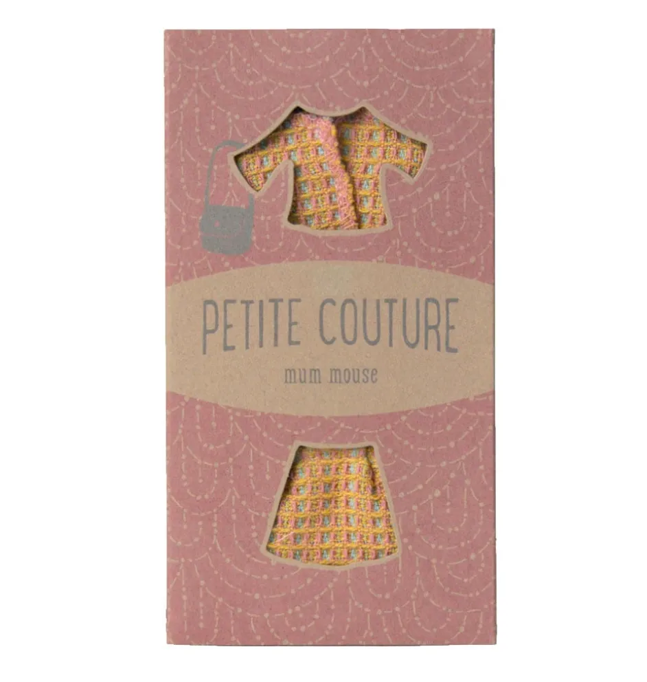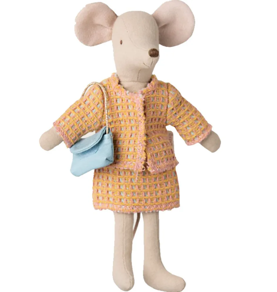 Chic mantelpakje voor Maileg moeder muis. Speciaal op maat ontworpen. De set bestaat uit een mantelpakje en een bijpassende tas.