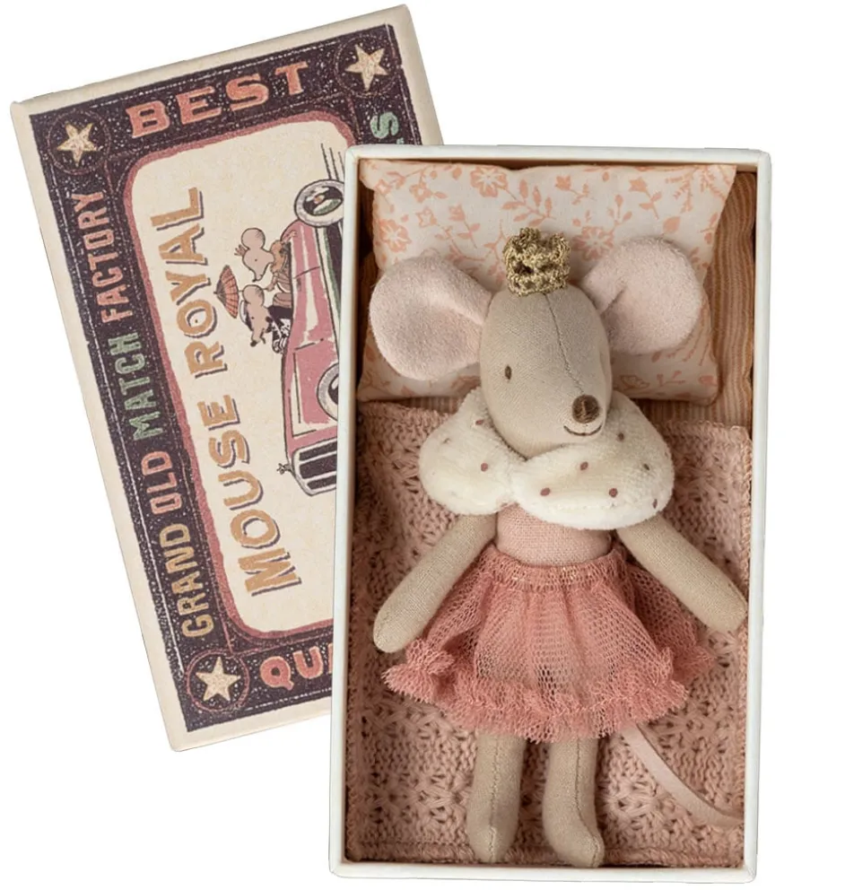 Mouse Royal / Little Sister muizenprinses in luciferdoos met beddengoed van het Deense merk Maileg.