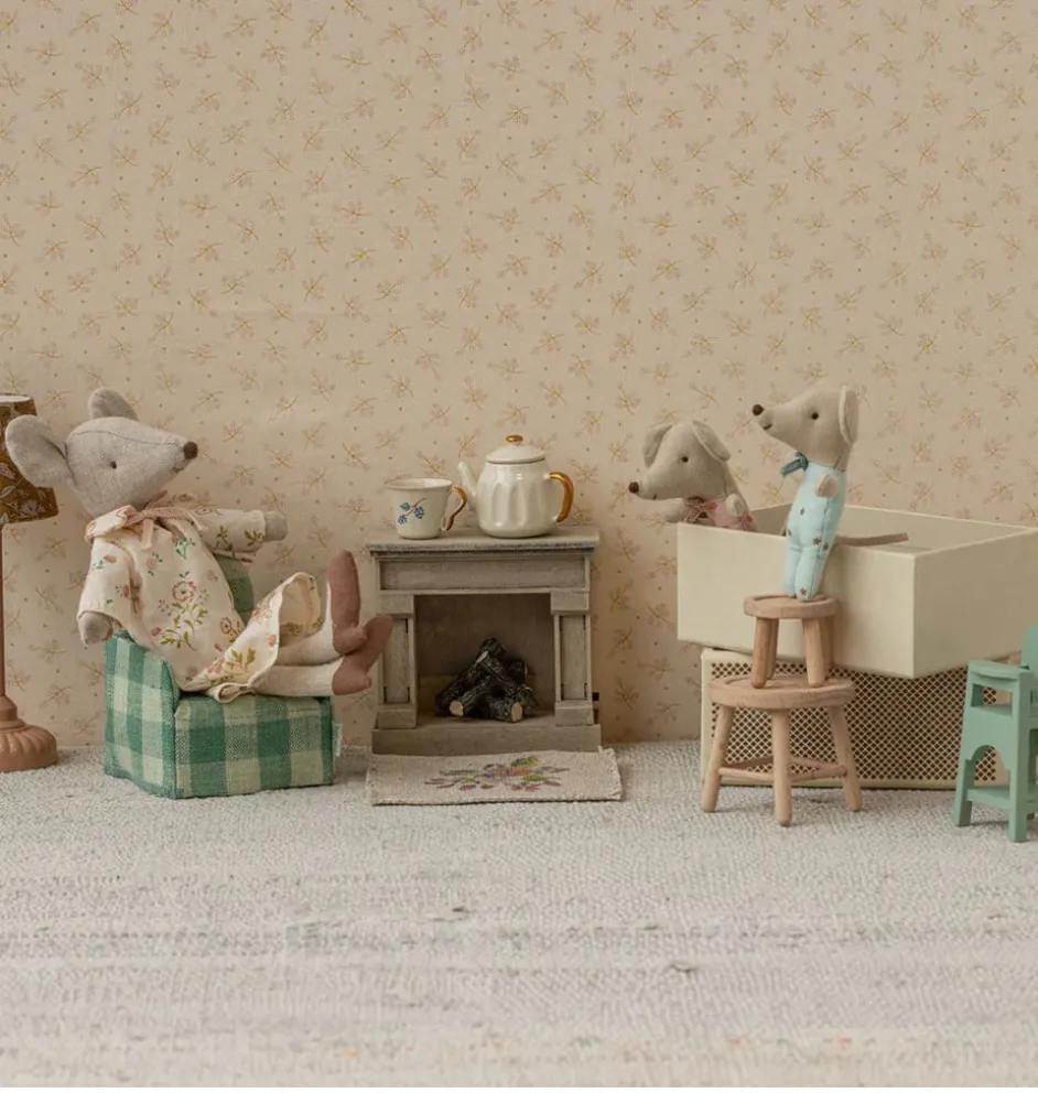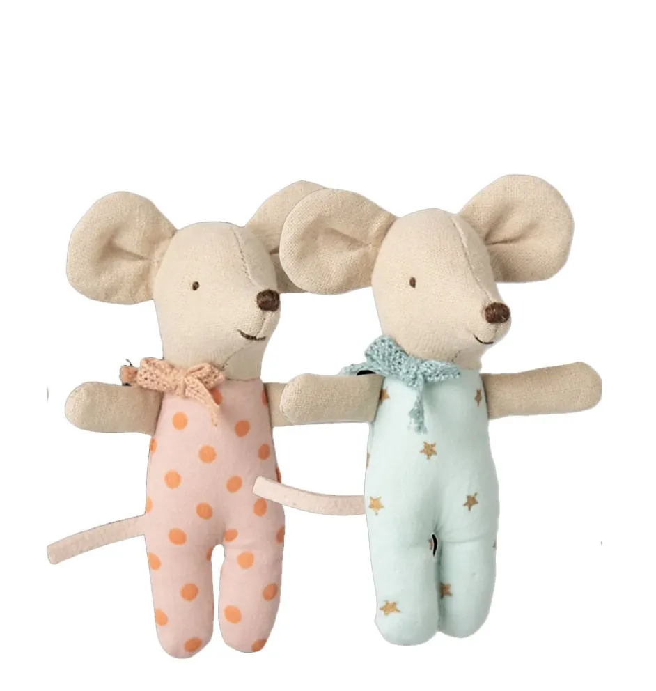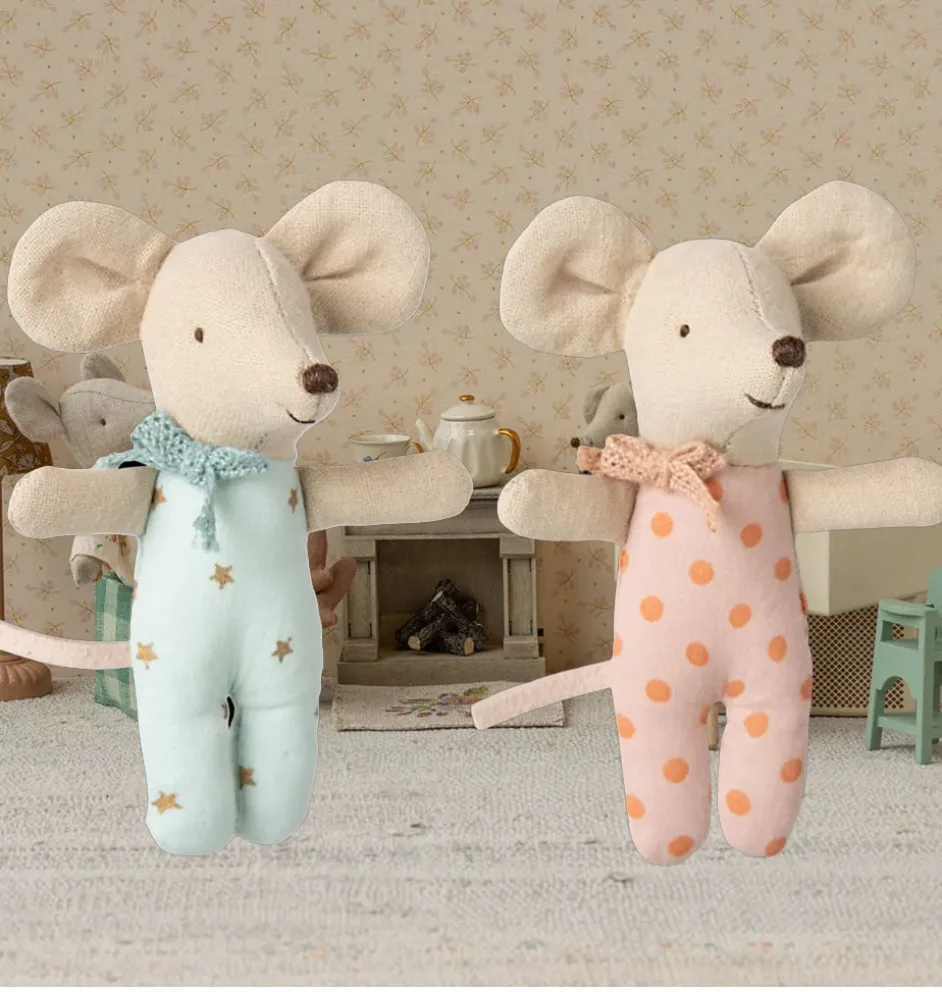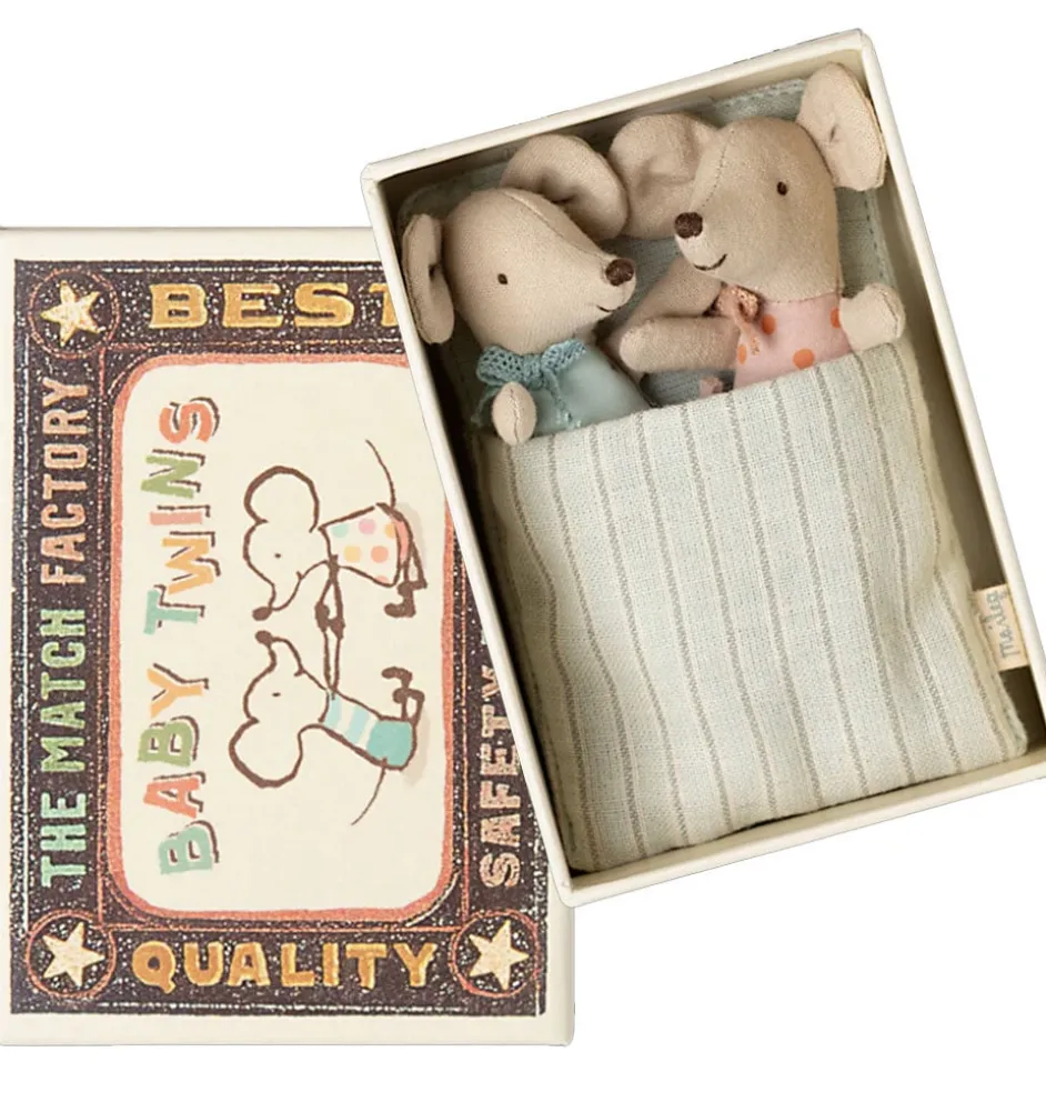 De muisjes slapen in hun luciferdoosje met mooi beddengoed.