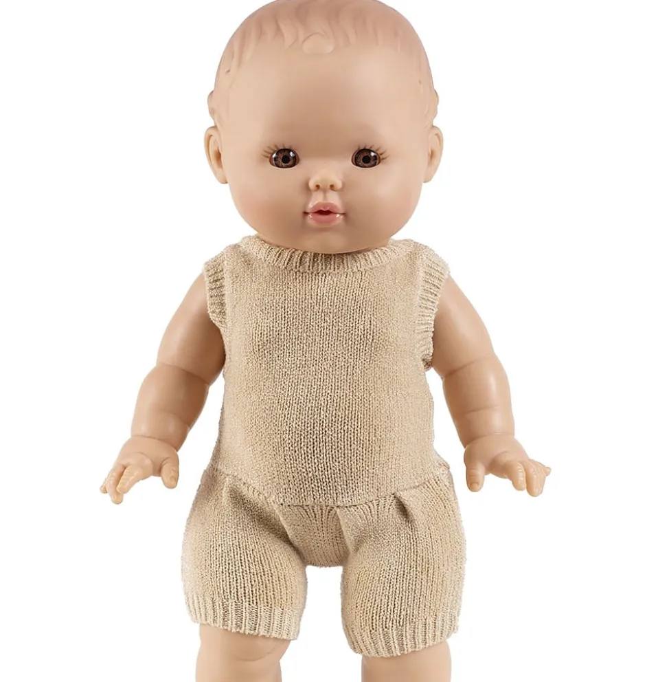 Minikane Barboteuse Orlando en tricot crème voor Gordi poppen.