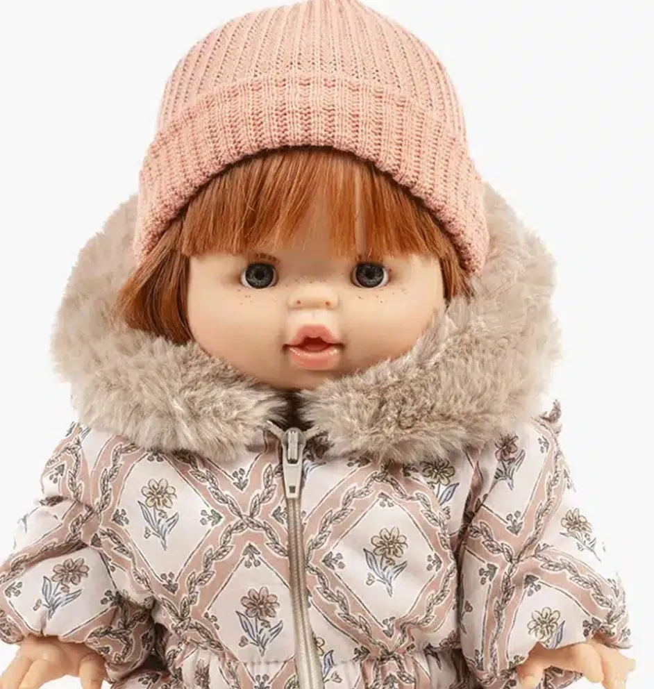 Deze warme muts van Minikane is geschikt voor zowel de Gordipoppen als de Bambinis van Minikane. Stijlvol zalmroze en heerlijk warm