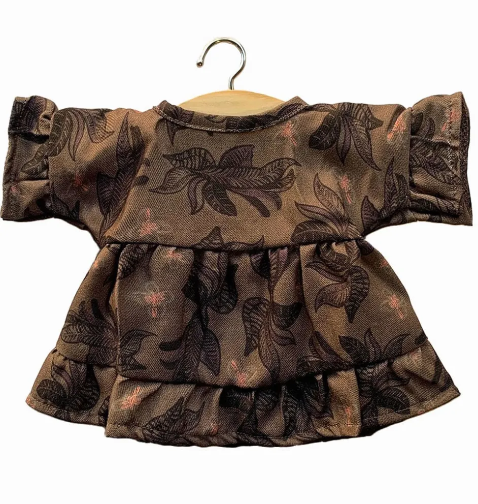Jurk met prachtige print van het Franse merk Minikane. De jurk is op maat ontworpen voor de Gordi poppen van Paola Reina en Minikane. Ook de staande poppen van 37 cm Minikane passen de jurk.