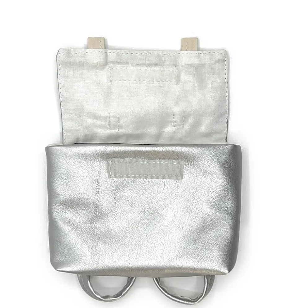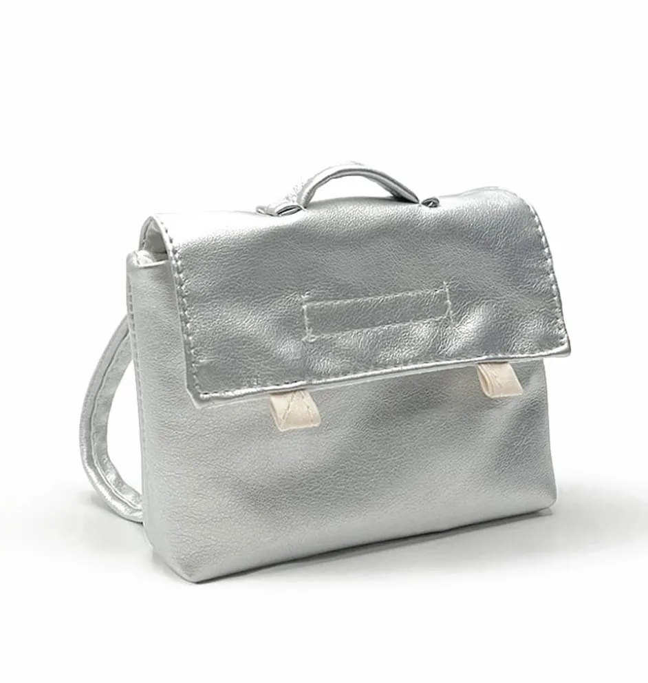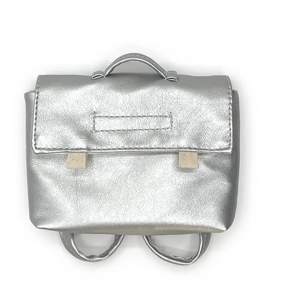 Mooie schooltas van Minikane. De tas is ontworpen voor de Gordi poppen en is gemaakt van zilver kunstleer.