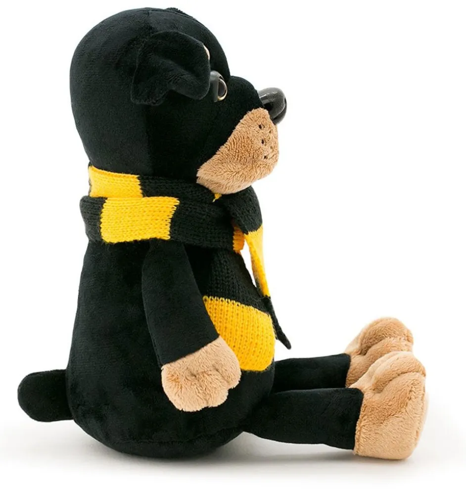 Knuffelhond Bax is een Rottweiler, een stoere, trouwe knuffelvriend van het merk Orange Toys uit Letland. Hij houdt niet zo van kou, vandaar de shawl. Leuk detail is zijn glanzende neus.