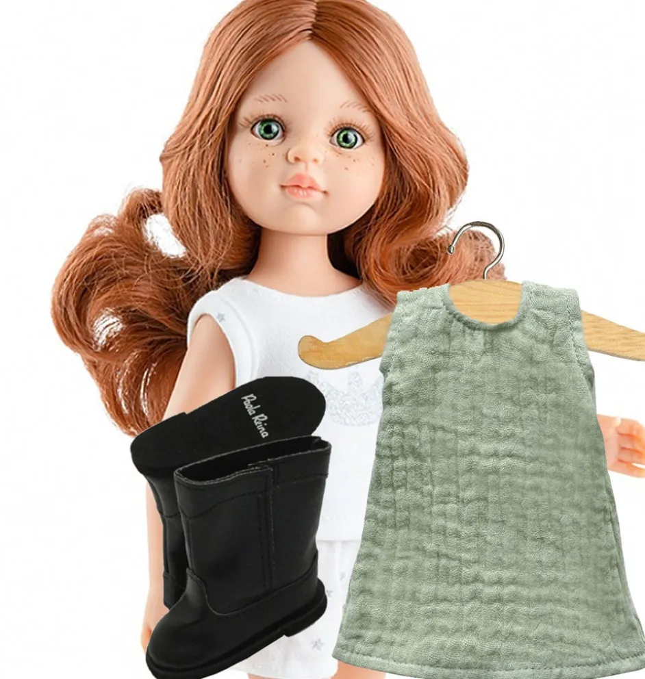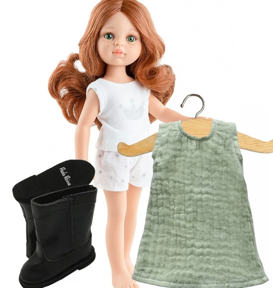De pop komt in een witte pyjame bestaande uit een top en een broekje en een haarband. De kleding op de foto is niet bij de prijs inbegrepen