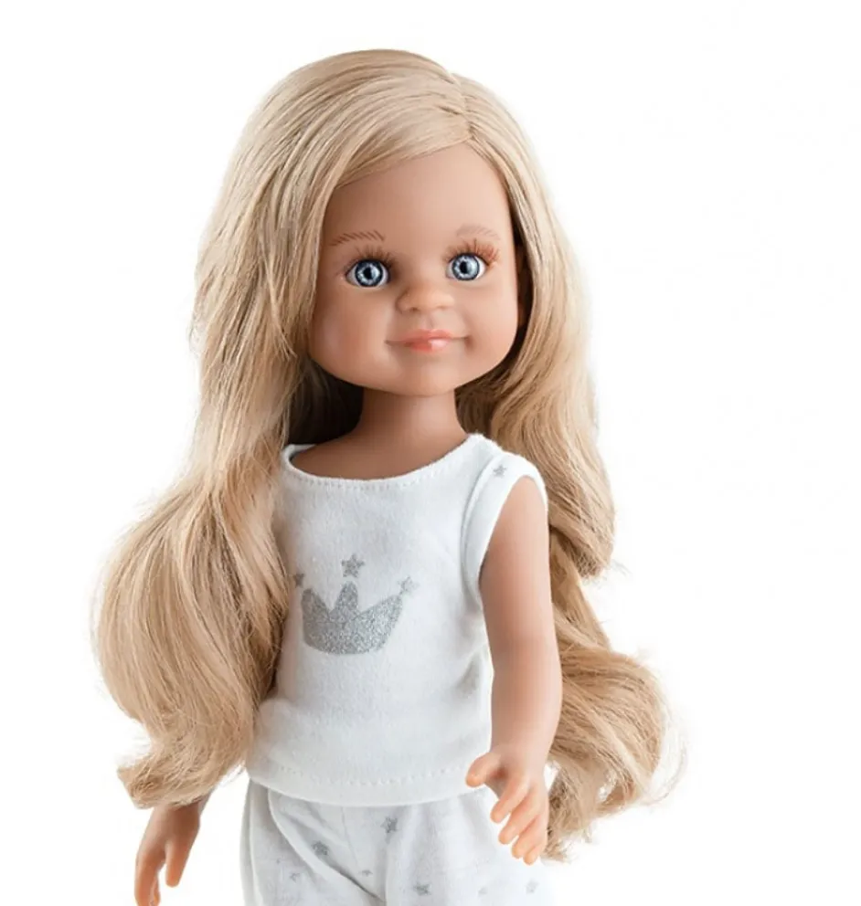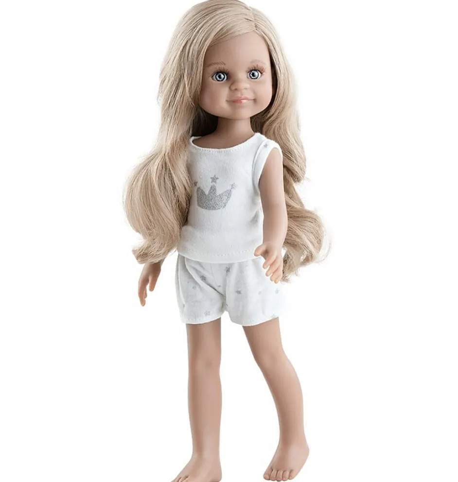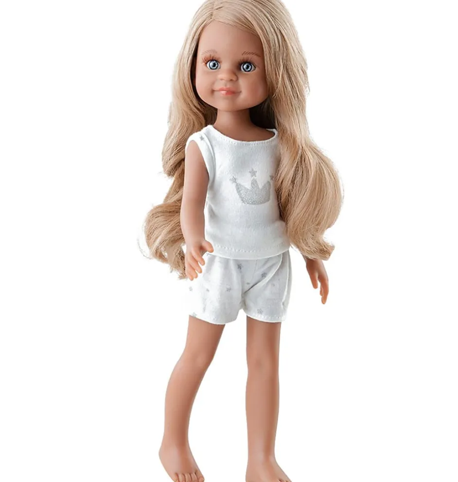 Simona is een Amigas / Lasamigas pop van Paola Reina. Ze is 32 cm groot en kan zelf blijven staan. Ze draagt een witte pyjama bestaande uit een short en een shirtje. Simone is licht gebruind.