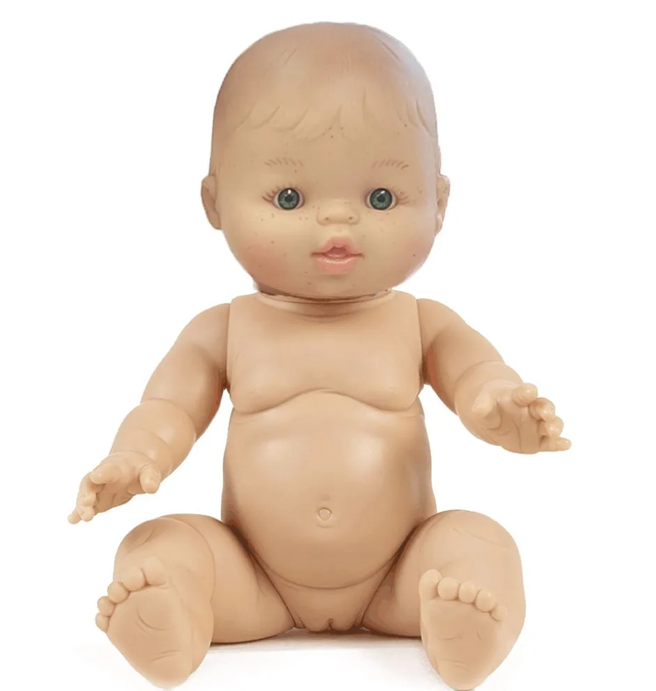 Paola Reina Gordi meisje babypop met wenkbrouwen en sproeten.