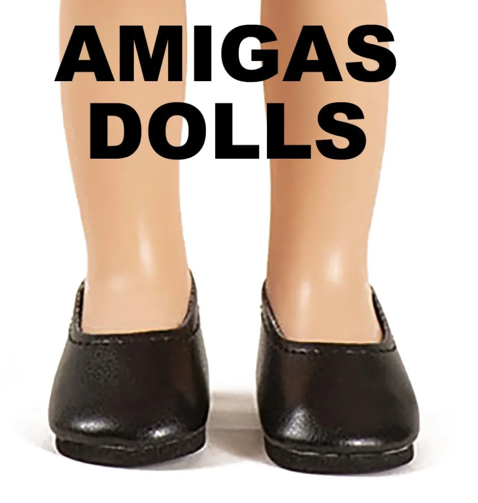 Zwarte schoenen voor de Amigas poppen van Paola Reina en Minikane.