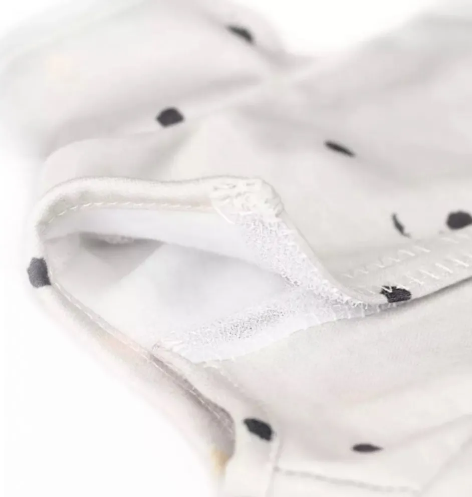 Materiaal: zachte grijze stof met stippenpatroon